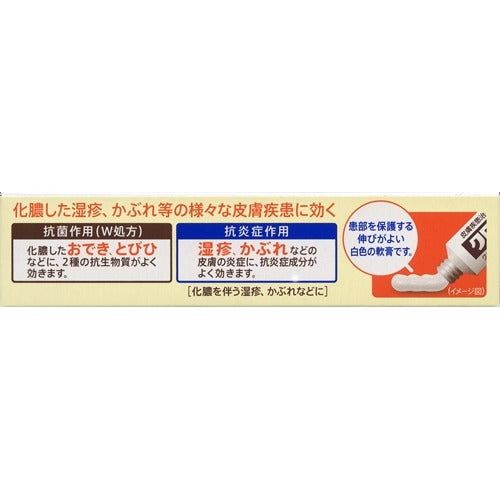 1.クロラムフェニコール、フラジオマイシン硫酸塩の2つの抗生物質を配合し、化膿した患部を治します。