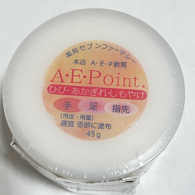 A・E・P軟膏は、粘膜の異常乾燥、角化改善作用を持つレチノールパルミチン酸エステルに末梢循環障害を改善するトコフェロール酢酸エステルをゲル化炭化水素に練合した軟膏で、ひじ・ひざ・かかとのあれ、指先・手のひらのあれ、ひび、しもやけ、あかぎれ等に用いる外皮用薬です。