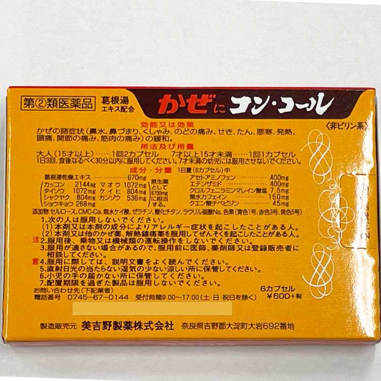 【指定第2類医薬品】コン・コールカプセル 6カプセル入